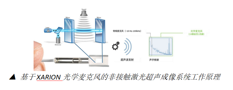 该研究采用XARION激光超声精密检测系统,核心接收设备为XARION光学麦克风(Eta450 Ultra)。它基于法布里-珀罗干涉原理,无需耦合剂、无需接触样品,直接通过空气检测超声引起的折射率变化,具备:
