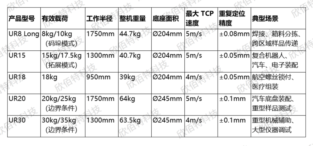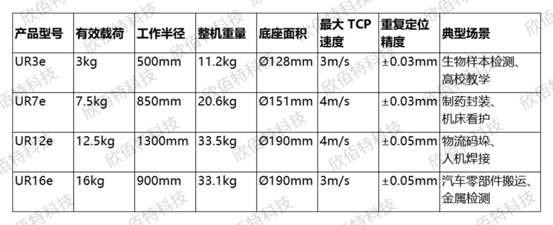 - E 系列(UR3e/UR7e/UR12e/UR16e):经典成熟款,高性价比易集成,是科研入门与工业量产研发首选。